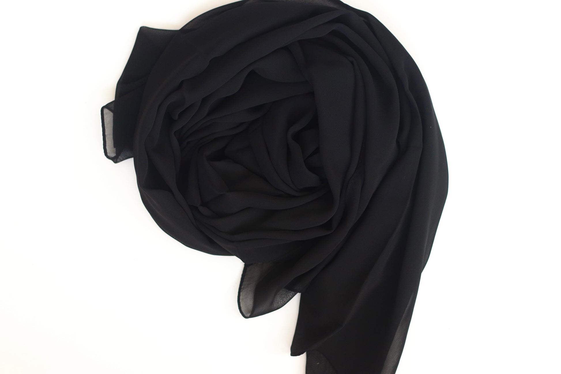 • Crepe – A breathable, slightly crinkled fabric with a matte appearance. It has a gentle texture that provides grip, helping the hijab stay in place without constant adjustment.